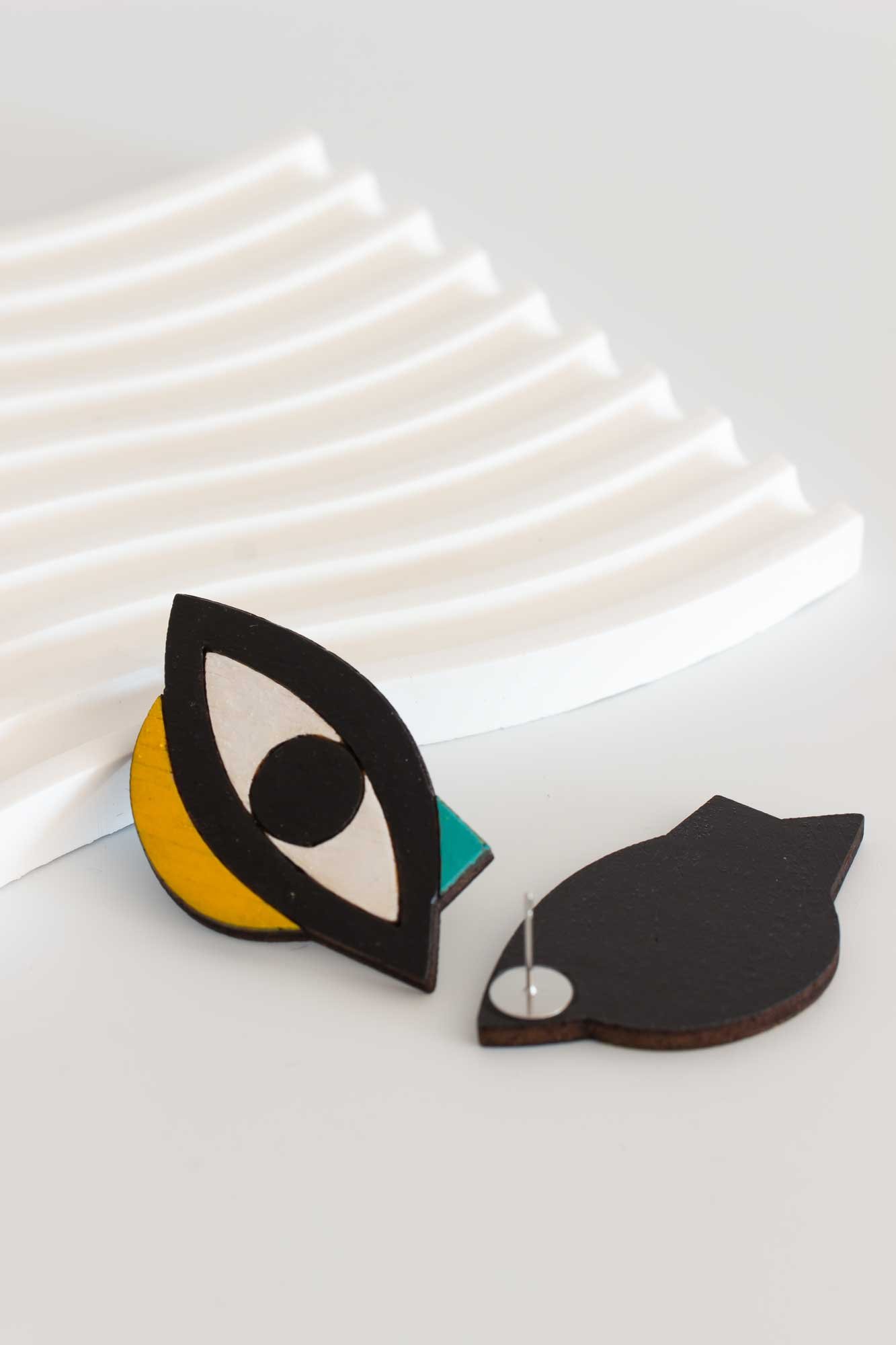 Pendientes de nuestra colección Jump, donde los estampados de las telas saltan a la madera.