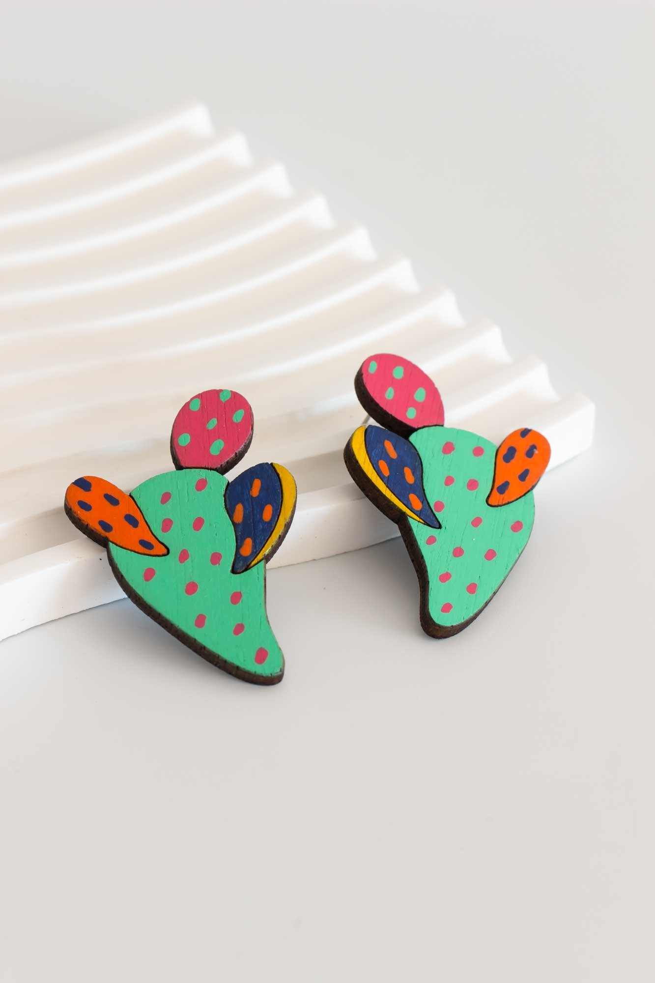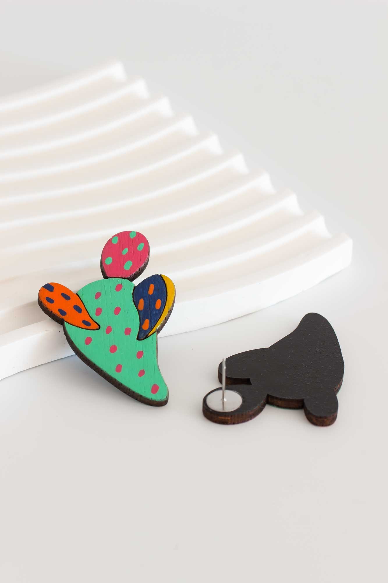 Pendientes de nuestra colección Jump, donde los estampados de las telas saltan a la madera.