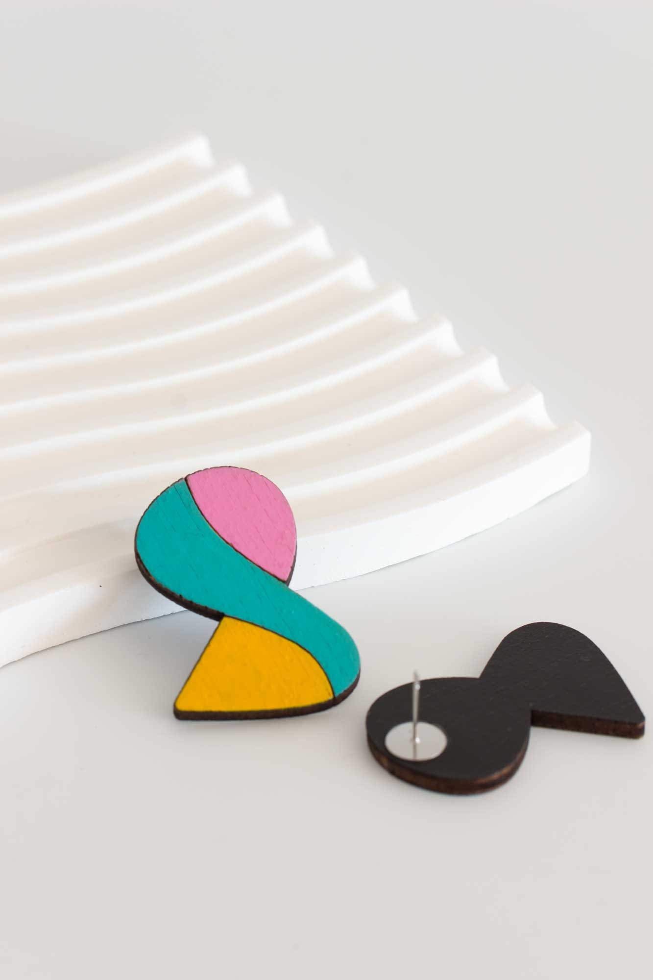 Pendientes de nuestra colección Jump, donde los estampados de las telas saltan a la madera.